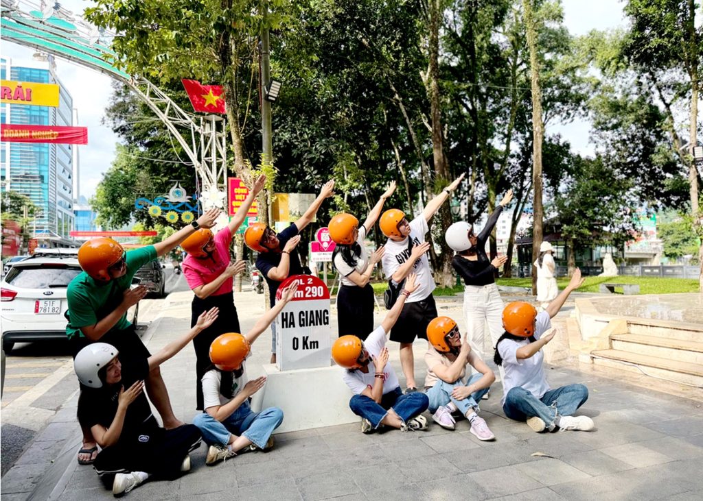 Du khách checkin tại cột mốc KM0 thành phố Hà Giang ( ảnh: ST)