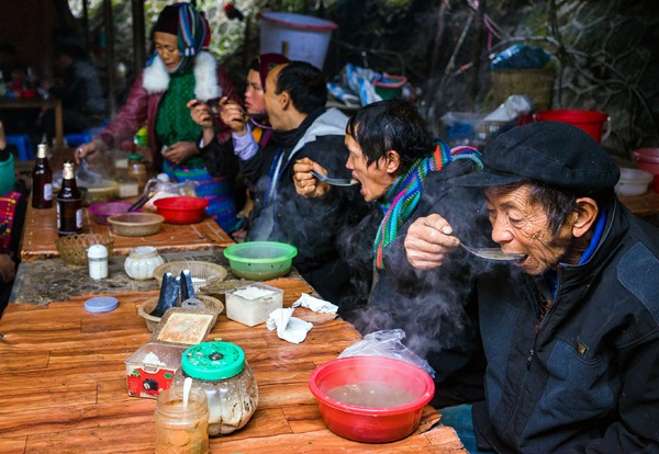 Ăn thắng cố không thể thiếu rượu ngô. Chỉ cần một bát nóng hổi, múc bằng muôi gỗ hay muôi inox, ăn kèm với cơm trắng hoặc mèn mén là đủ no lòng. Người Mông, người Dao, người Giáy… ngồi quây quần bên bàn gỗ thấp, chuyện trò rôm rả. Có người ngồi từ sáng đến trưa, say thắng cố, say rượu, mà vẫn chưa nỡ rời đi.